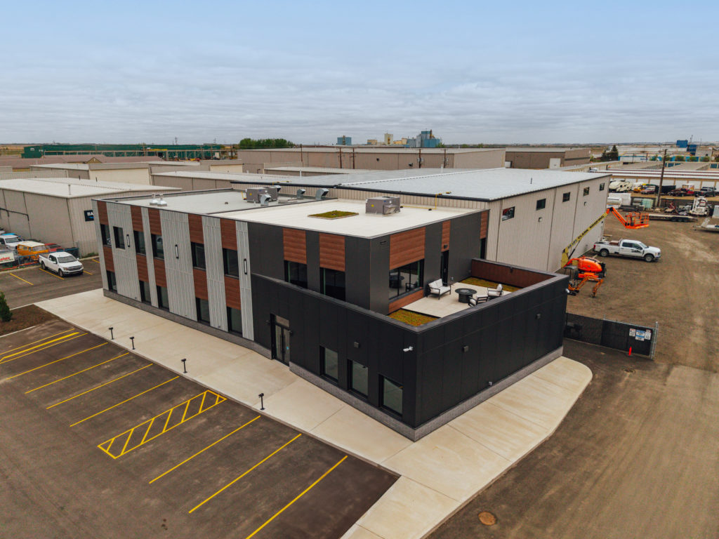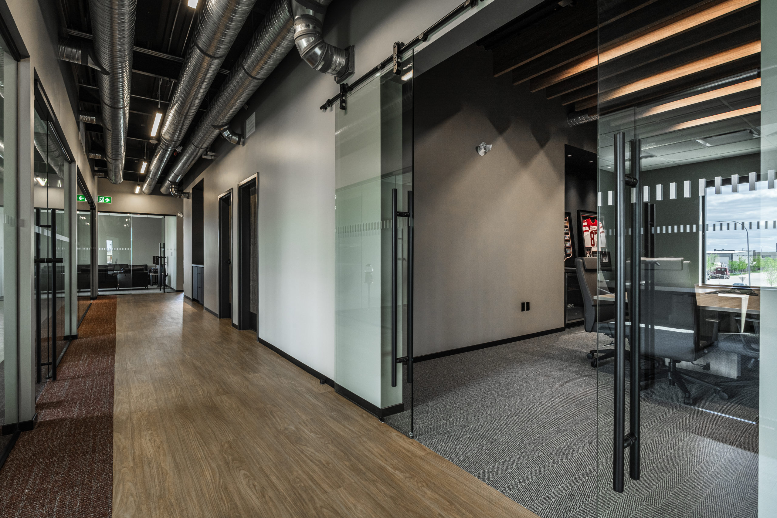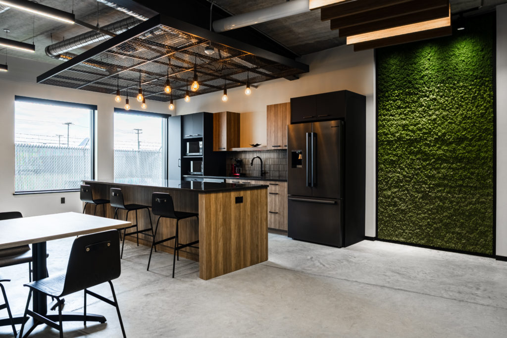 This project included a 20,200sf. design-build facility with two levels of modern office space and an attached workshop. Amenities such as a rooftop patio, moss wall, boardrooms, office gym, and golf simulator create a functional and engaging workplace. The scope covered concrete work, pre-engineered building assembly, subcontractor coordination, and detailed finish carpentry.