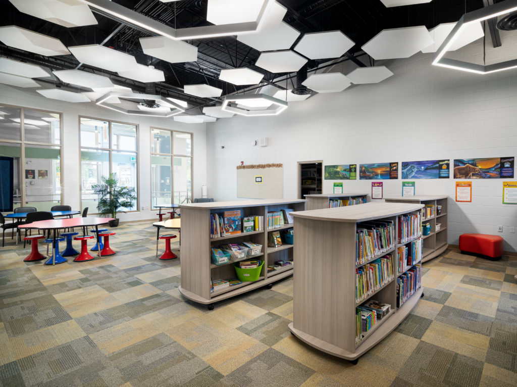 Calgary Catholic School District is a repeat client for us. The work on this project included selective demolition with abatement, new piles and foundations in order to facilitate a complete refresh of the school. Focusing on the interior space was a significant part of the modernization. This work included increased classroom sizes, a music room and learning commons spaces with suspended acoustic panels, removal of the stage to allow for an increased gym space, and an entirely new mechanical system. The envelope was redesigned to include new windows, brick, composite panels, and a new roof.